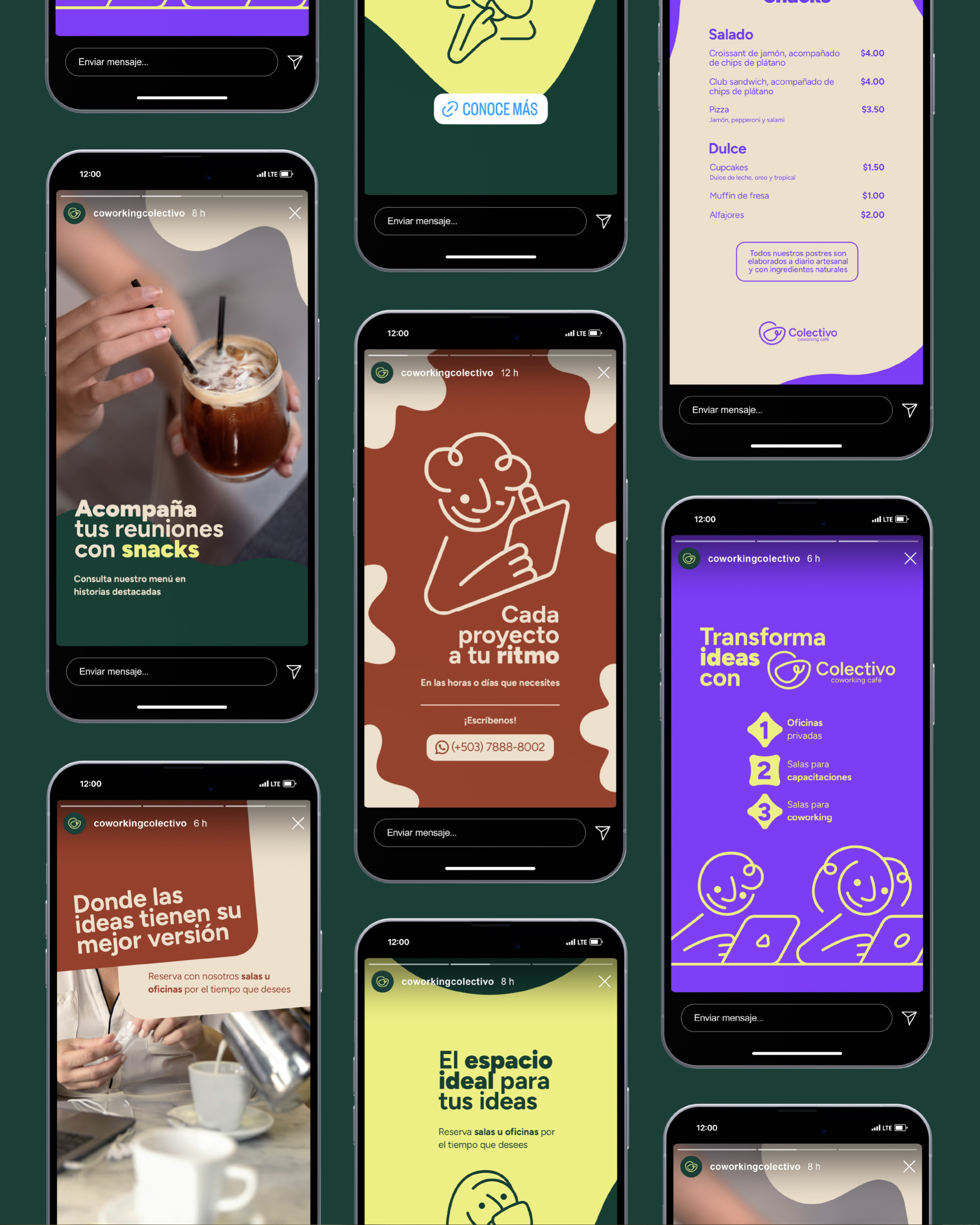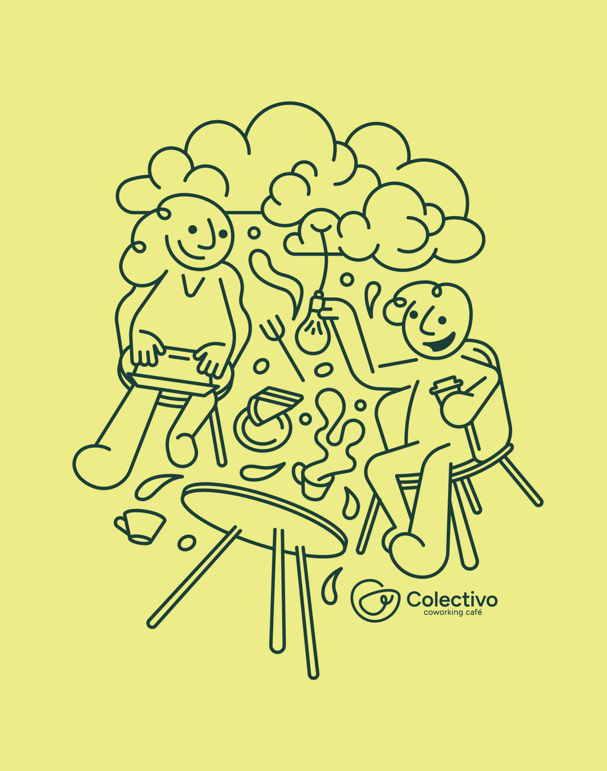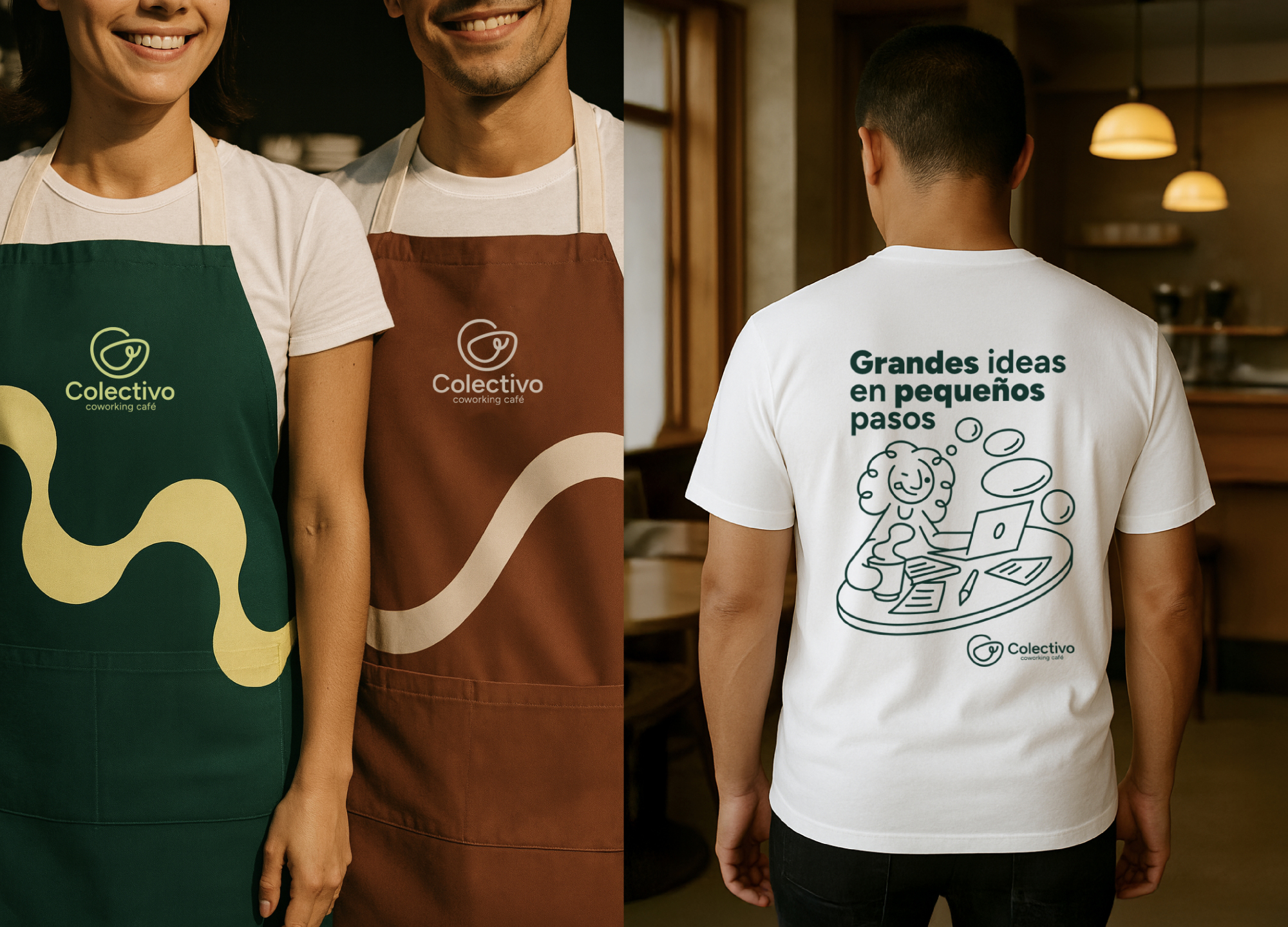 El sistema visual se aplicó de manera coherente en señalética, papelería, menús de café, material institucional, piezas para redes sociales, uniformes y aplicaciones digitales. El resultado es una marca sólida y auténtica que posiciona a Colectivo Coworking como un punto de encuentro creativo, donde la comunidad impulsa el trabajo y las ideas encuentran el espacio perfecto para empezar.