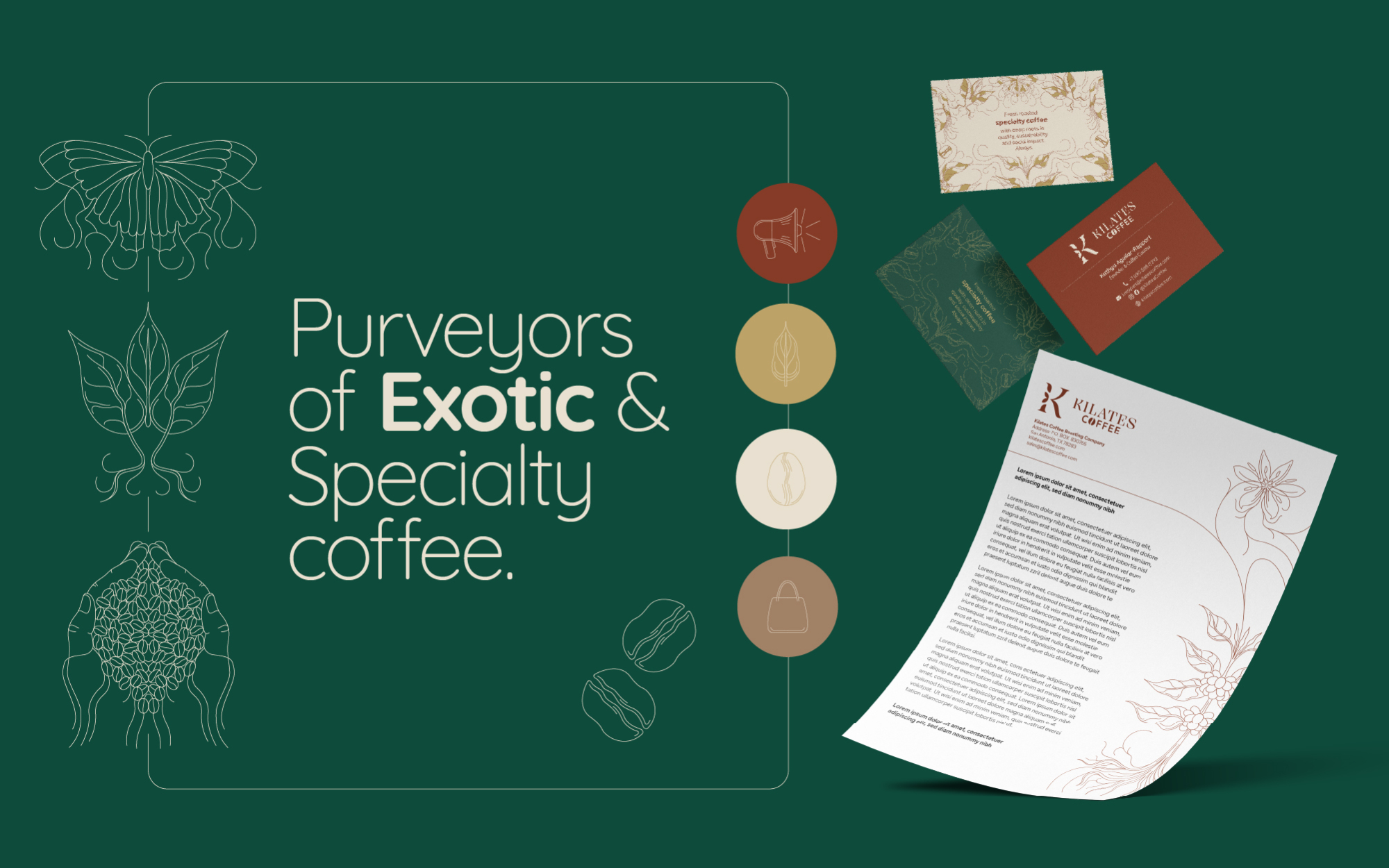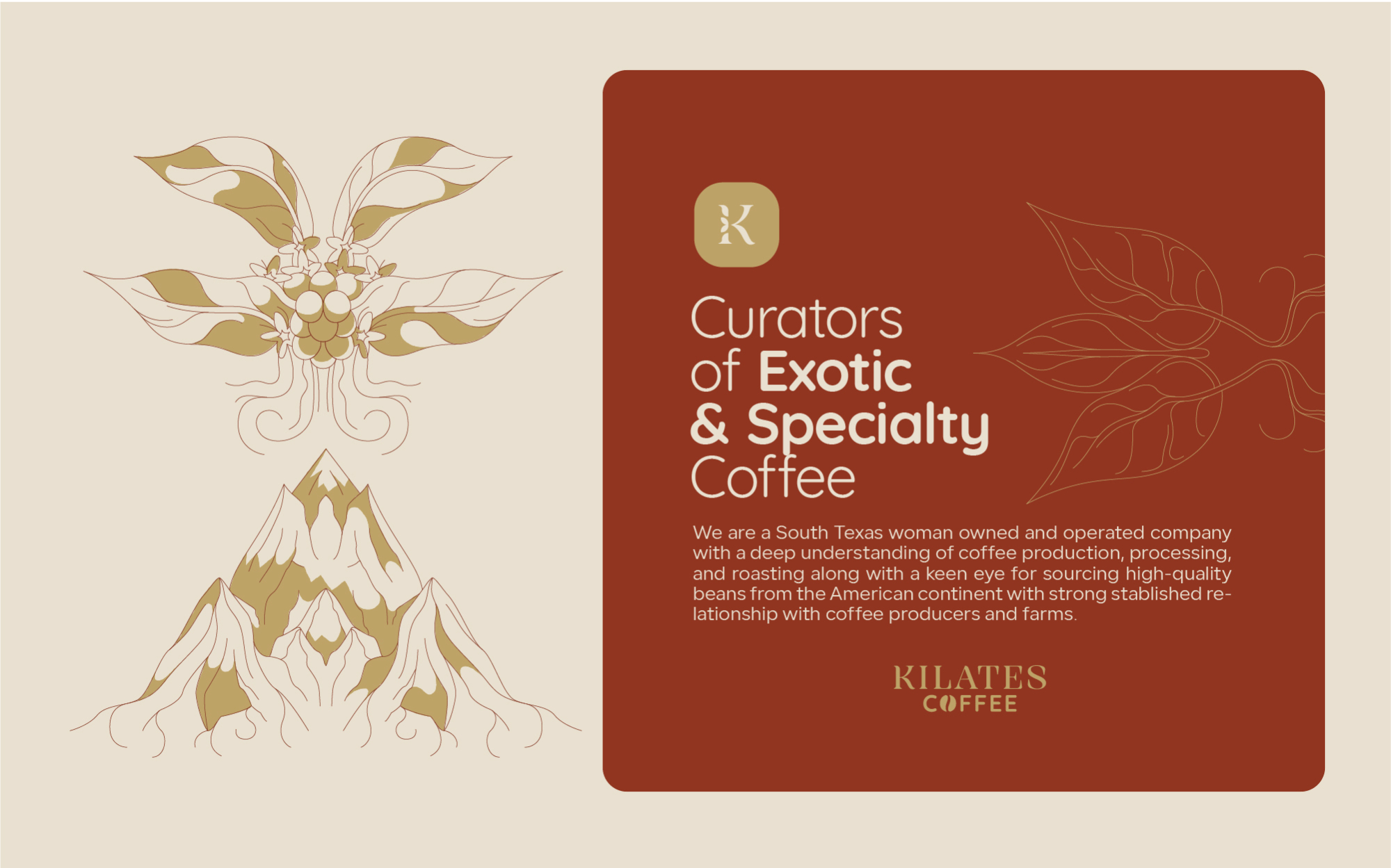 Kilates Coffee es un proyecto de branding desarrollado desde la estrategia hasta la ejecución visual. Conceptualmente, la marca refleja lujo, calidad y raíces profundas en el café de especialidad, con un enfoque en sostenibilidad y empoderamiento social.