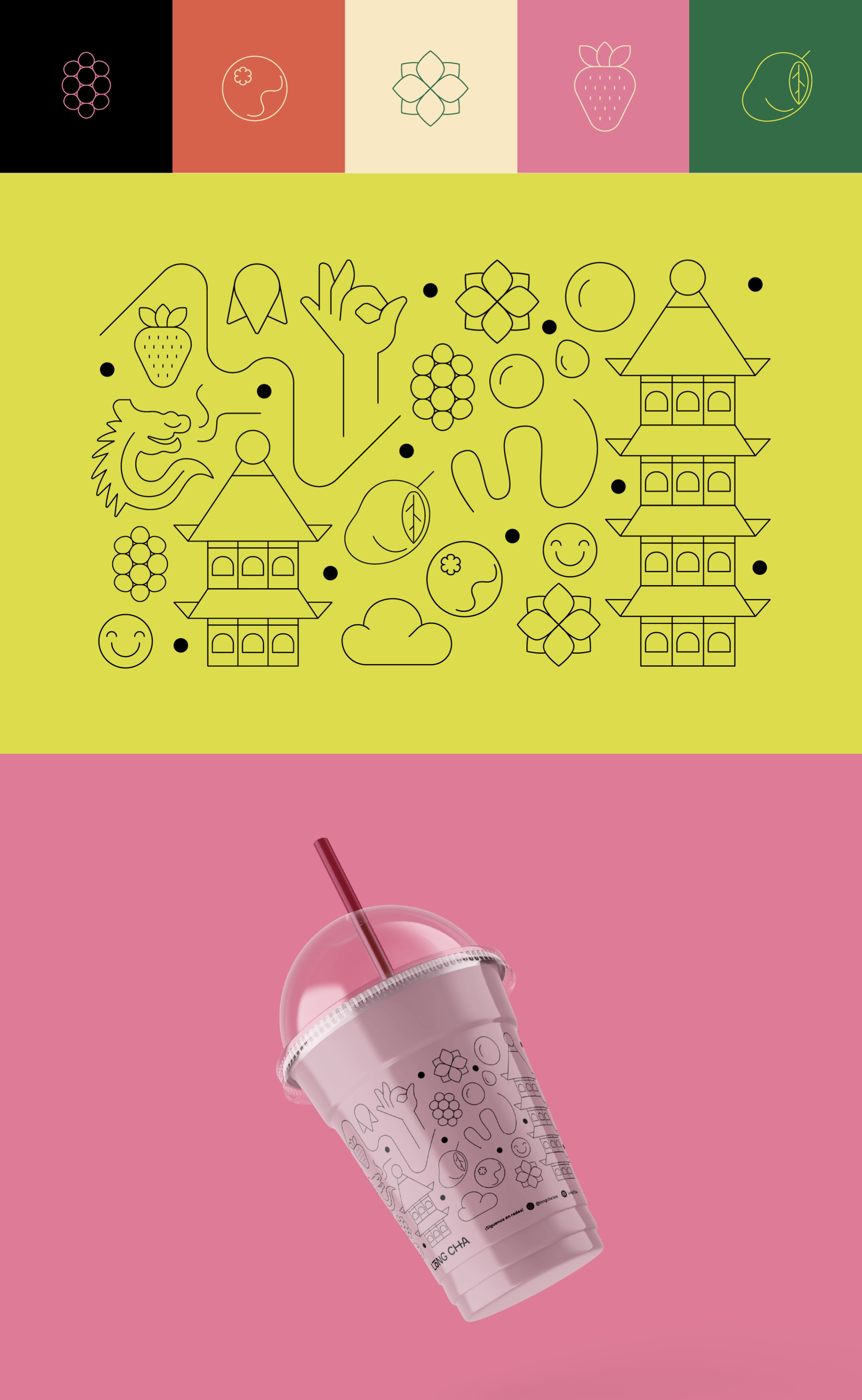 El look&feel integra una paleta cromática vibrante con tipografías contemporáneas y recursos gráficos únicos, como hanzi ilustrados y trazos inspirados en la caligrafía oriental, que refuerzan dinamismo y personalidad. La identidad se aplicó en menús, empaques, vasos, uniformes, tote bags, stickers e iconografía digital para redes sociales. El resultado es una marca fresca y consistente que conecta con el público y transporta la esencia de Taiwán a cada punto de contacto.