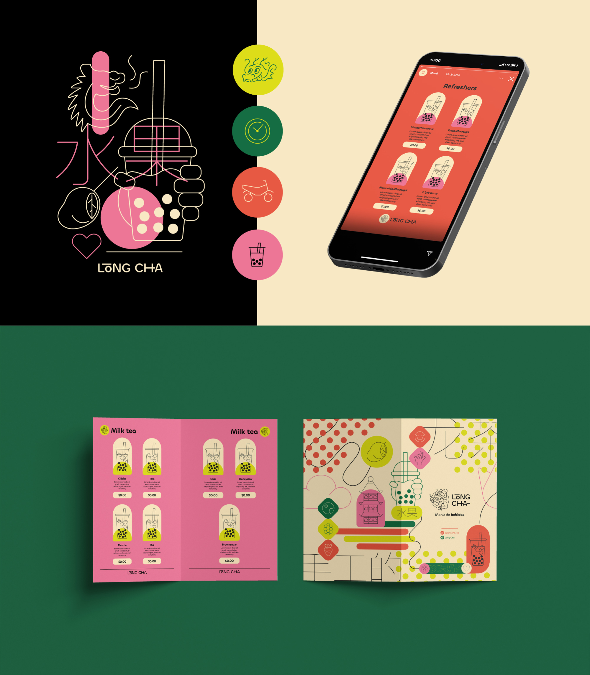 El proyecto de branding para Long Cha se inspiró en la riqueza cultural de Taiwán y en la simbología del dragón, emblema de vitalidad y tradición. Bajo el concepto “La Esencia del Dragón”, la marca transmite autenticidad y energía, convirtiendo cada bebida en una experiencia que conecta la cultura taiwanesa con la frescura del bubble tea. La estrategia se enfocó en construir una identidad moderna y flexible que diferenciara a Long Cha en un mercado competitivo, generando cercanía con el público a través de un universo gráfico lleno de carácter.